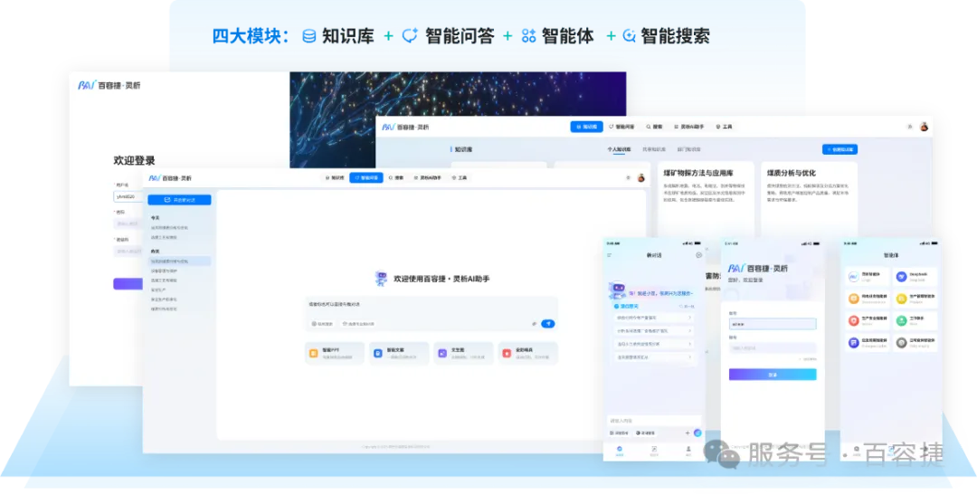 以工业知识库为根基,以行业大模型为核心引擎,深度融合视觉、语音与数据多模态能力,构建出「知识库、智能搜索、智能问答、业务智能体」四位一体的智能系统。它不仅是一个问答工具,更是能理解、会推理、可执行的「数字专家」,为选煤厂从知识传承、智能监控到决策辅助的全链条赋能。